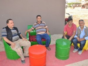 Suriye’nin Halep kentinde demirci ustası olarak çalışırken, iç savaş nedeniyle 4 yıl önce ailesini de alarak Türkiye’ye gelen ve Reyhanlı’da yaşamaya başlayan demirci ustası İbrahim Hacı Taha, önce kapı, pencere demirleri ve çatı işleriyle uğraştı. Ancak, kapı, pencere ve çatı işlerinin bir gün biteceğini düşünerek, boş varillerden koltuk ve masa yapmaya başladı. Kendisiyle çalışan ve 5 kişinin de geçimine katkı sağlamak amacıyla farklı bir şey bulma çabası içerisine girdiğini söyleyen Taha, “Bir anda çevrede işe yaramayan boş varilleri gördüm. Topladım veya satın aldım. Sonra da bunları keserek, kaynak yaparak koltuk, sandalye masa haline getirdim. Özellikle çay bahçeleri, parklarda kullanılacak hale gelince de satarak hem kendi aileme ve hem de yanımda çalışan 5 kişinin geçimine katkı sağlamaya başladım” dedi.