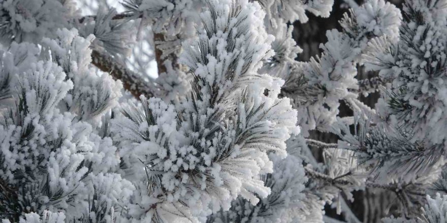 Gece sıcaklığın sıfırın altında 24,5 dereceye kadar düştüğü ilçede araçlar dondu, ağaçlar kırağıyla kaplandı, çatılarda uzun buz sarkıtları oluştu.