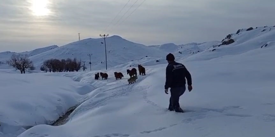 Edinilen bilgilere göre, sahipsiz olduğu belirtilen 6 katır, yaklaşık 10 gün önce etkili olan yoğun kar yağışı nedeniyle 3 bin rakımlı Mereto Dağı eteklerinde mahsur kaldı. Bulundukları bölgenin yaklaşık bir metre karla kaplanması nedeniyle ilerleyemeyen katırlar, dağlık alanda zor durumda kaldı.