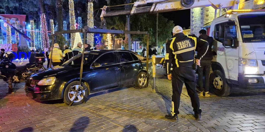 Yılbaşı uygulamaları kapsamında trafik ekipleri, Belediye Meydanı'nda plakasız bir otomobili durdurdu. Yapılan kontrollerde sürücünün 0.64 promil alkollü olduğu belirlendi. Sürücüye alkollü araç kullanmak başta olmak üzere 3 ayrı ihlalden yaklaşık 16 bin lira idari para cezası kesildi. Ayrıca sürücünün ehliyetine 6 ay süreyle el konulurken, otomobil çekici yardımıyla bulunduğu yerden kaldırıldı. Polis ekipleri, yılbaşı gecesi boyunca vatandaşların huzur ve güvenliği için denetimlerin sabahın ilk ışıklarına kadar aralıksız devam edeceğini bildirdi.