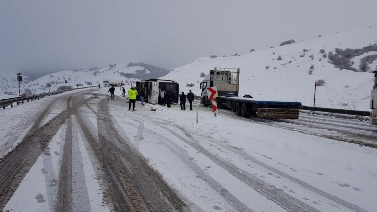 Alınan bilgilere göre, TFF 1. Lig Erzurumspor-Bursaspor maçını izlemek için Erzurum'a gelen Bursaspor taraftarını taşıyan otobüs, saat 09.15 sıralarında Tepebaşı Geçidi yakınlarında kaza yaptı. 50 kişilik Bursaspor'u taraftarı taşıyan otobüs seyir halindeyken önündeki tıra çarpmamak için manevra yaptı. Yolların aşırı buzlanması nedeniyle 16 AHL 409 plakalı otobüs, kontrolden çıkarak devrildi.