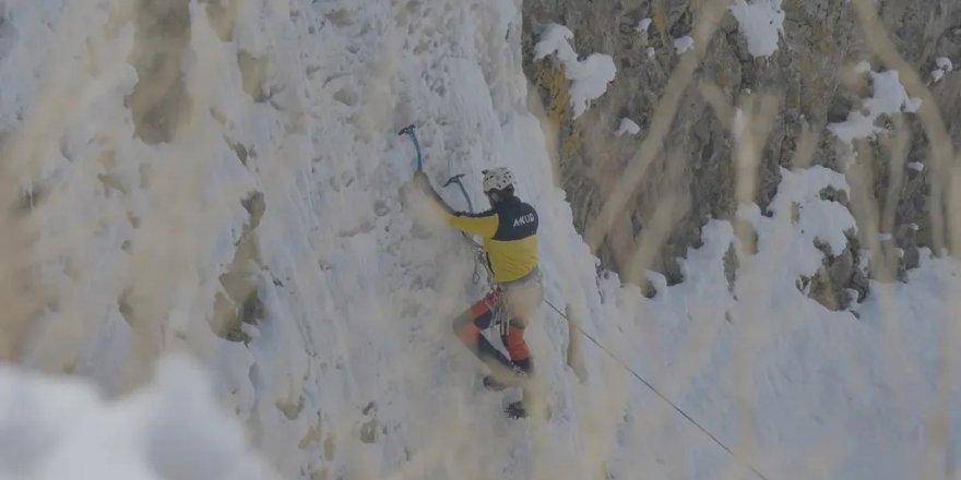 Iğdır’dan bölgeye gelen doğa sporları ekibi, kanyonda oluşan buz şelalesinde buz tırmanışı gerçekleştirdi. Yaklaşık 20 metre yüksekliğindeki buz duvarında tırmanış yapan sporcular, bölgede yeni bir rota açarak ilk çıkışı tamamladı.