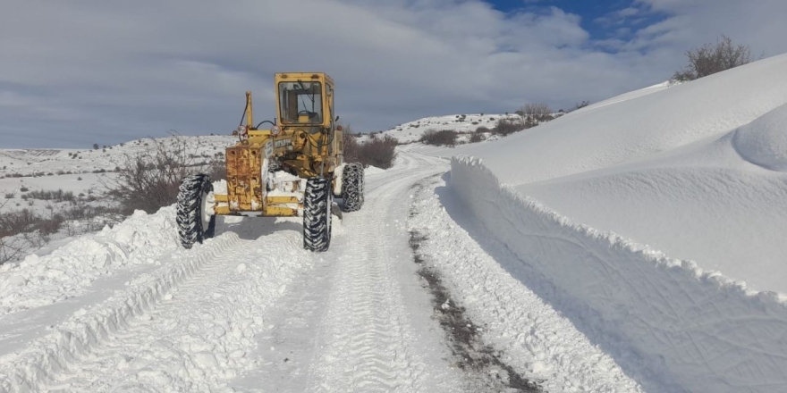 Erzincan'da etkili olan kar ve tipi nedeniyle ulaşıma kapanan köy yollarında açma çalışmaları sürüyor.