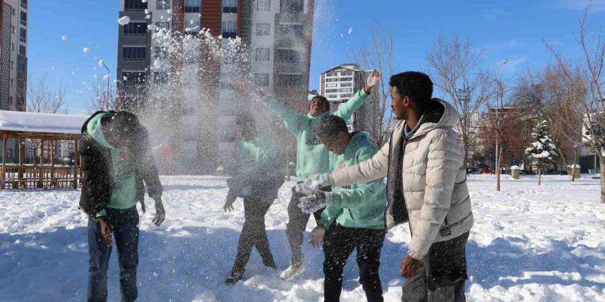 Sivas'ta eğitim gören birçok Afrikalı öğrenci, hayatlarında ilk kez karla tanıştı. Kardan adam yaparak kartopu oynayan öğrenciler doyasıya eğlendi.