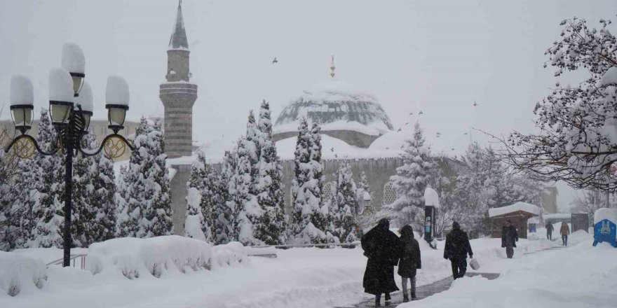 Erzurum'da gece saatlerinde etkili olmaya başlayan kuvvetli kar yağışı adeta kent merkezini esir aldı.