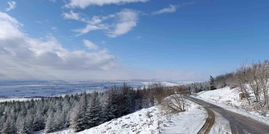 Eskişehir'in yüksek kesimlerinde etkili olan kar, çevreyi beyaza bürürken, Bektaşpınar yolunda eşsiz manzaralar ortaya çıkardı. Karla kaplanan doğa, adeta kartpostallık görüntüler oluşturdu.