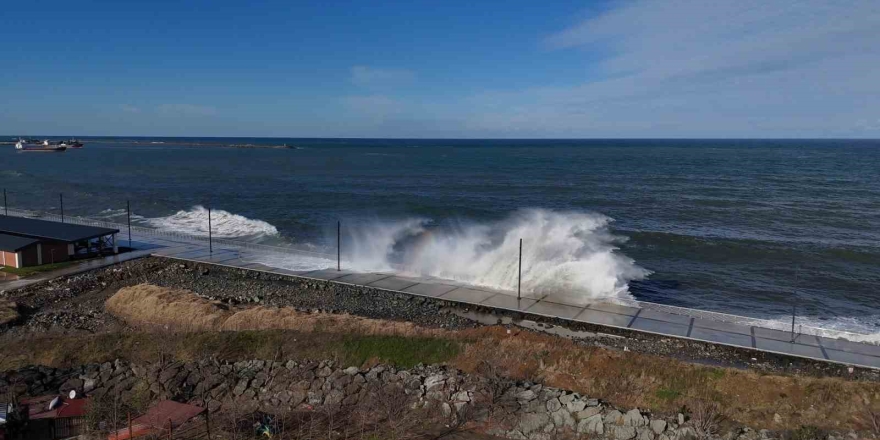 Karadeniz'de etkili olan fırtınanın getirdiği dalgalar Rize Sahili'nde havadan görüntülendi.