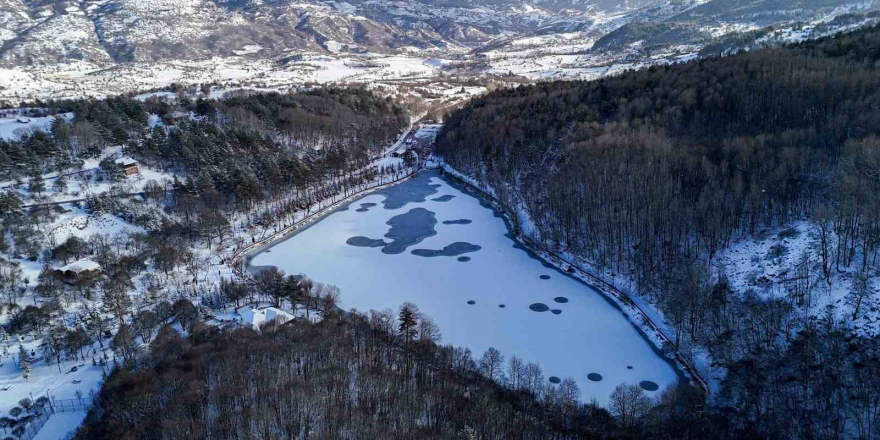 Karagöl Tabiat Parkı Beyaza Büründü, Gölün Yüzeyi Buz Tuttu