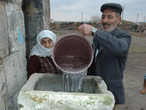 Köylülerden Fahrettin Özdemir, süzülen suyun tamamen saflaştığını söyleyerek, "Ocak ayında pet şişenin içine koyduğun zaman bile bu su donmuyor. Şu anda köyün yüzde 80'i bu yöntemi kullanıyor. Yeni gelen suların içinde asbest boru var. Bunlar kanserojen madde taşıyor. O suyu buraya döküp arıtmadan içtiğimiz zaman insana bir ağırlık veriyor ve içemiyoruz" dedi.