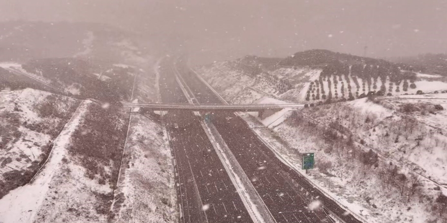 Kuzey Marmara Otoyolu’nda Kar Yağışı Havadan Görüntülendi