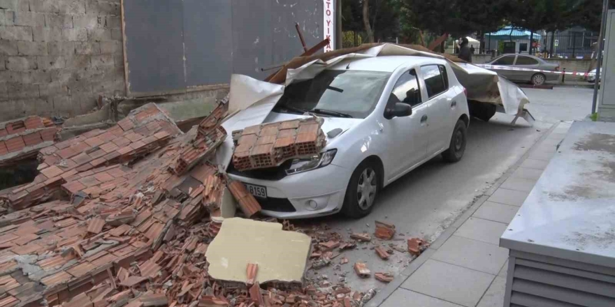 Maltepe'de bir inşaat şantiyesinin duvarı, kuvvetli fırtınanın etkisiyle seyir halindeki bir otomobilin üzerine yıkıldı. Kazada şans eseri ölen ya da yaralanan olmazken, araçta maddi hasar meydana geldi.