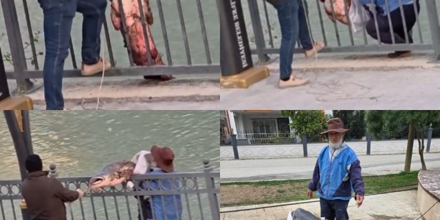 Mersin’de Göksu Nehri’nde Yakalanan Dev Yayın Balığı Güçlükle Kıyıya Alındı