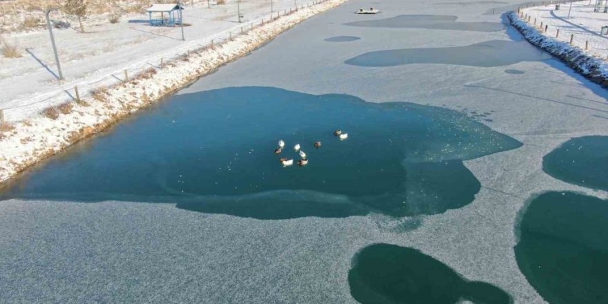 Sivas’ta Soğuk Hava Etkisini Gösterdi.. Ördeklerin Olduğu Gölet Kısmen Dondu!