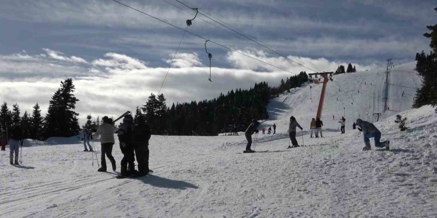 Türkiye'nin önemli kış turizmi merkezlerinden Uludağ'da güneşli havanın etkisiyle yoğunluk yaşandı. Zirvede yazdan kalma bir gün yaşayan tatilciler bol bol kayak keyfi yaptı.