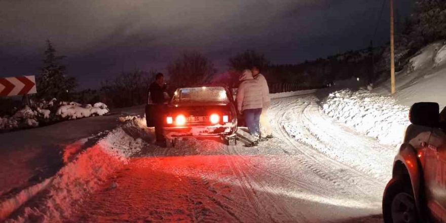 Elazığ'da etkili olan kar yağışının ardından, tarihi Harput Mahallesi'nde bir vatandaş aracıyla kara saplanarak yolda kaldı. Kendi çabasıyla aracını bulunduğu yerden kurtarmak isteyen vatandaş başarısız olunca durumu Elazığ Belediyesi ekiplerine bildirdi. İhbar üzerine olay yerine çıkan belediye ekipleri, yolda aracıyla mahsur kalan vatandaşı bulunduğu bölgeden kurtardı.